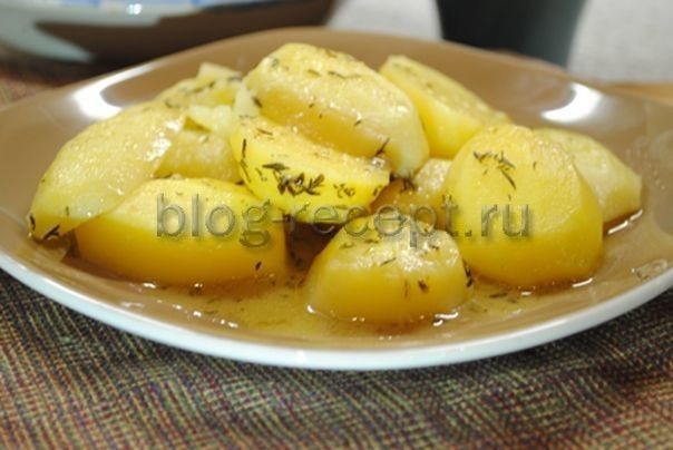 Посыпаем солью и тимьяном. А в пространство между клубнями кладем кусочки сливочного масла.