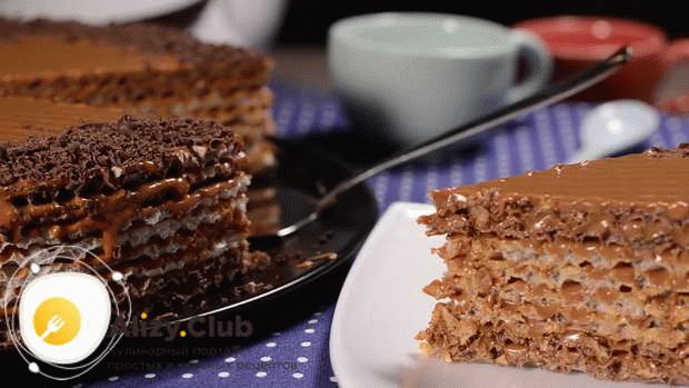 - Если торт делают с домашними вафлями, то его не выдерживают в холодильнике, иначе коржи оседают и перестают быть хрустящими.