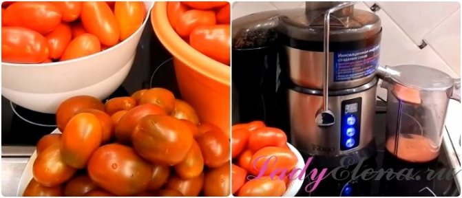 - Также вы смело можете использовать томатный сок собственного приготовления. Для этого подойдут большие переспелые помидоры. Нужно только пропустить их через мясорубку со специальной насадкой, чтобы отделить шкурку и семечки.