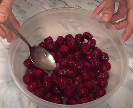 - Если используете свежие или замороженные ягоды, то очистите их от косточек и засыпьте сахаром. Они пустят сок. Проварите их на медленном огне до закипания (приблизительно 15–20 минут). Отлейте немного сока и разведите в нем крахмал. Влейте в горячее варенье и проварите до загустения. Снимите с огня и оставьте охлаждаться.