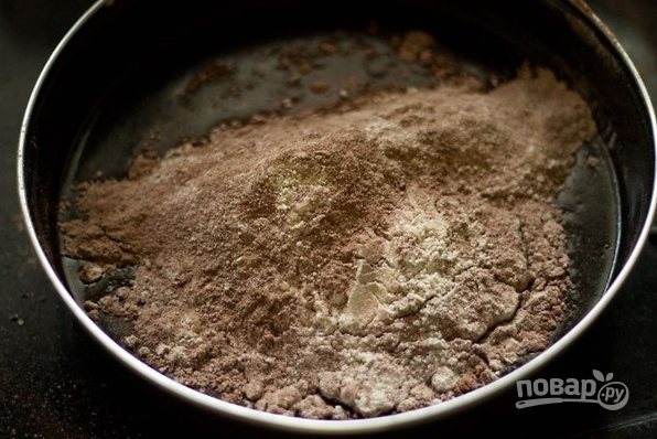 1. Соедините и просейте все сухие ингредиенты: муку, какао, разрыхлитель и соль.