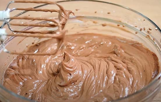 Кладем сыр Маскарпоне и вливаем шоколадный ганаш. Продолжаем взбивать массу, пока она не станет однородной.