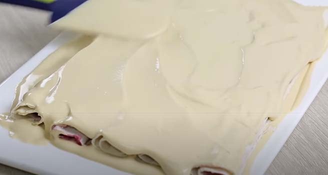 - Вылейте на нее сметану.
