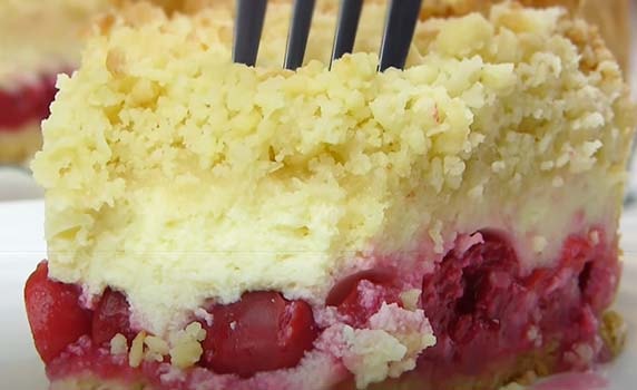 - Рассыпчатый торт с творогом, вишней и кокосовой стружкой