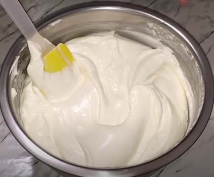 - Крем. Чтобы приготовить сметанный крем для торта простой, выполните такие действия: