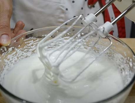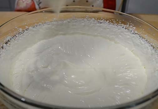 10. Для приготовления крема взбейте сливки с сахарной пудрой (сахаром) до плотных пиков.
