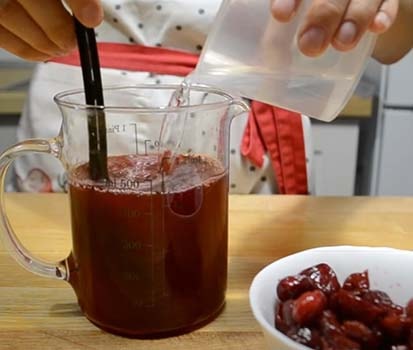 3. Влейте воду и поставьте на огонь. Чуть прогрейте, чтобы сахар полностью растворился. Снимите с огня.