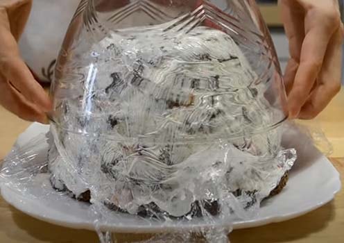 Вынимаем его из духовки и даем остыть в форме минут 30, затем перекладываем торт на решетку верхом вниз. В таком виде оставляем до полного остывания.
