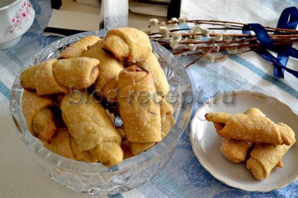 Изысканные по вкусу рассыпчатые рогалики готовят из песочного теста. Чтобы их приготовить, нужно взять: