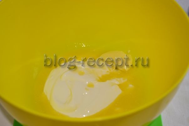 - Маргарин растапливают в микроволновке, затем остужают и смешивают со сметаной.