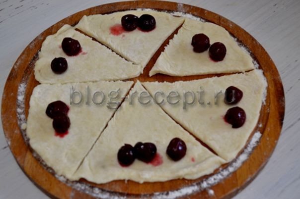 - На широкую часть сектора кладут начинку. Можно сделать рогалик без начинки.