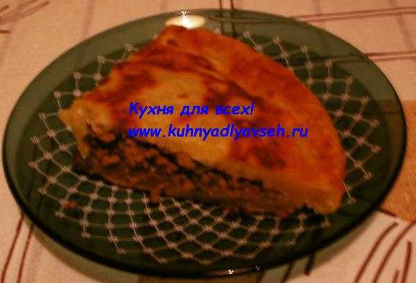 От рецепта слоек с фаршем в бутерброднице у меня остались как слоёное бездрожжевое тесто, так и смешанный фарш, обжаренный с луком. Естественно нужно было что-то делать с этими продуктами. Продолжать приготовление слоек я не стал, поскольку как делать и что получается стало ясно сразу. Слойки получаются очень вкусные, но сам процесс медленный – 15 минут на четыре слойки и потом остывание бутербродницы для выпечки следующей партии. Поэтому я решил попробовать испечь пирог, но печь в духовке не хотелось из-за очень высокой температуры на улице. Оставалась только сковорода. Отсюда выходило следующее требование – фарш не должен быть сырым, поскольку выпечка на сковороде достаточно быстротечна и сырой фарш может не успеть пропечься.